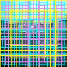 Let’s take our sample image again and plot it, this time including the grid cells. Note that we display the scaled image now - the way the network is going to see it.