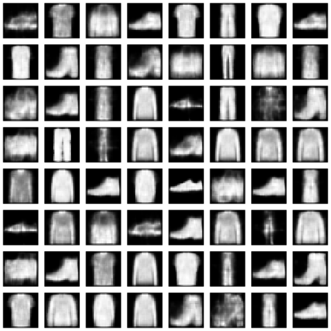How well did that work? Let’s see the kinds of clothes generated after 50 epochs.