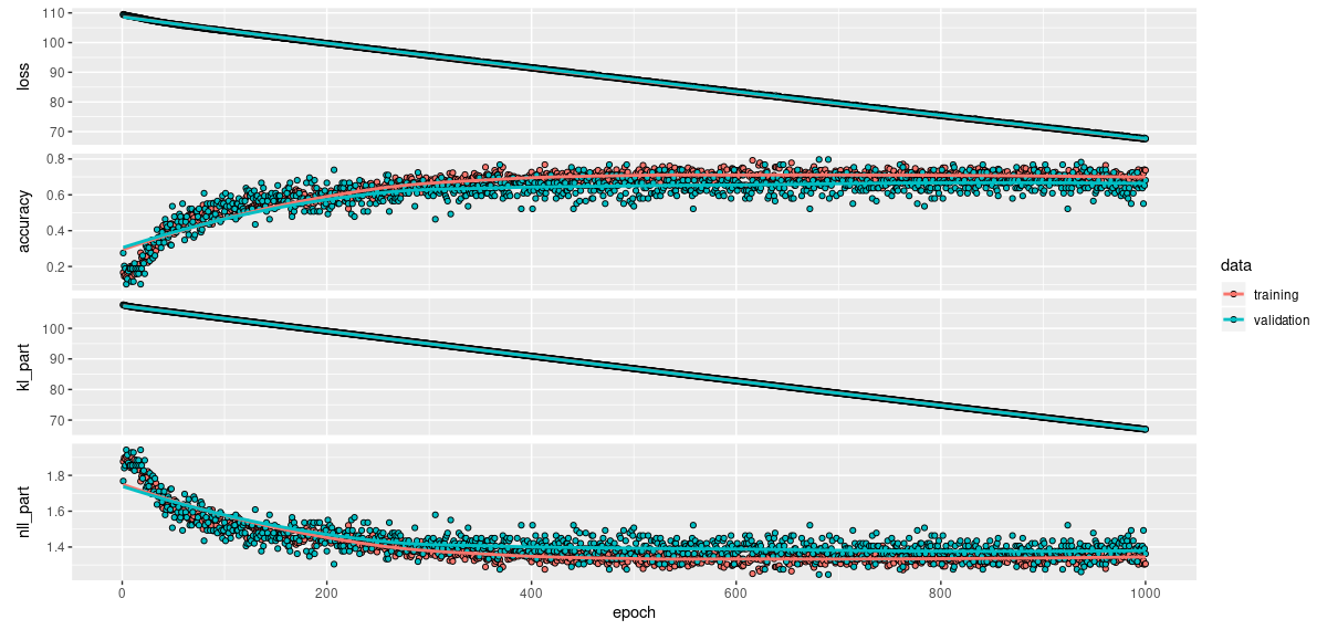 This will become part of the loss. The way we set up this example, this is not its most substantial part though. Here, what dominates the loss is the sum of the KL divergences, added (automatically) to model$losses.