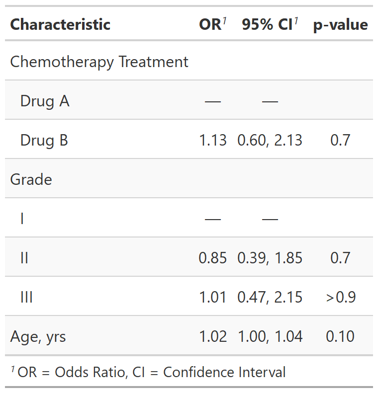 add_p(include = ...)); report q-values (like false discovery rate) - Set global rounding options with themes (for estimates, confidence intervals, and p-values)