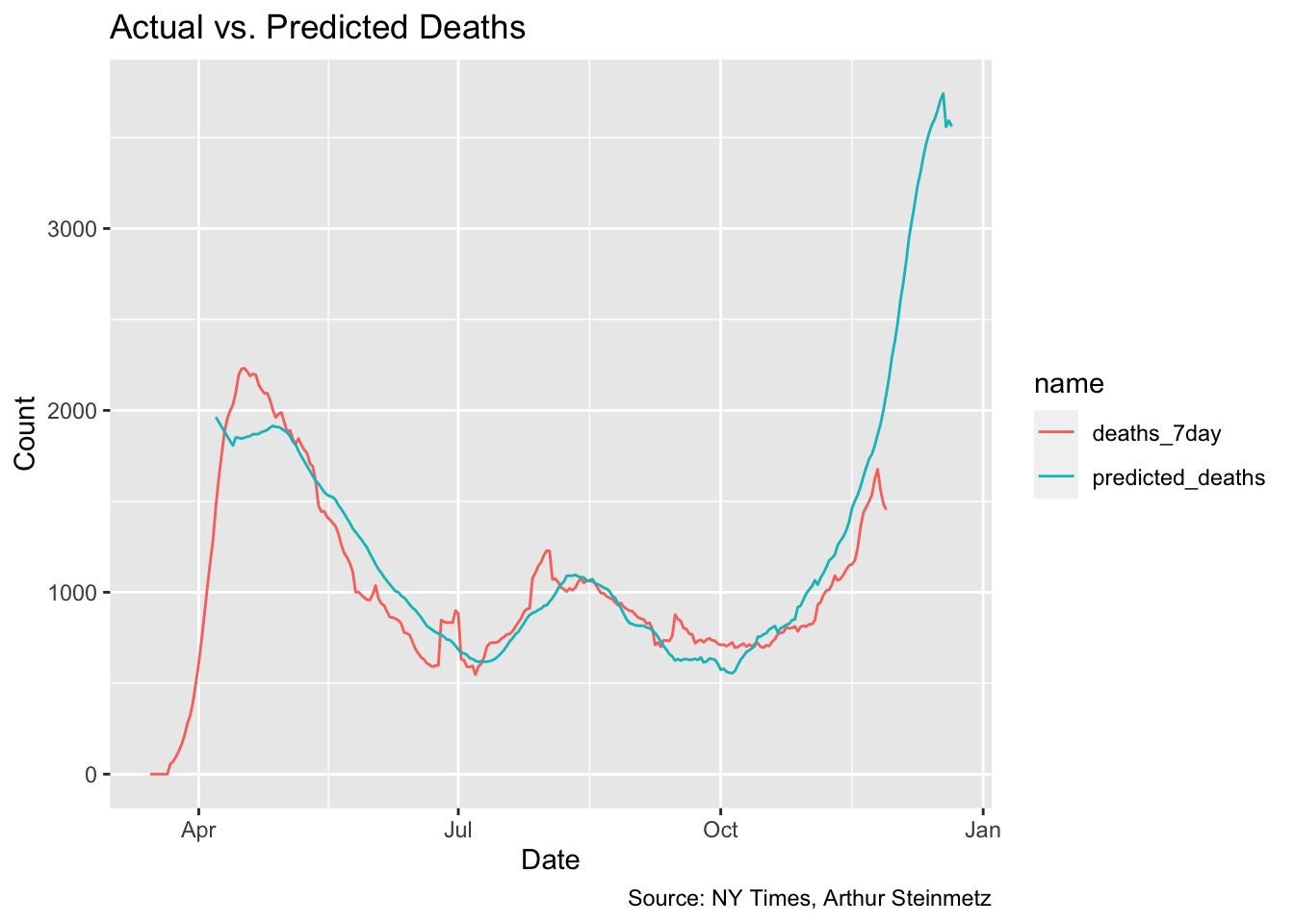 mutate(deaths_7day = (deaths_total - lag(deaths_total, 7)) / 7)