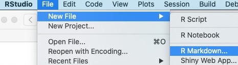 So let’s begin building our dashboard. To do this, we’re going to open a new flexdashboard R file. We do that by selecting File > New File > R Markdown…. as shown below.