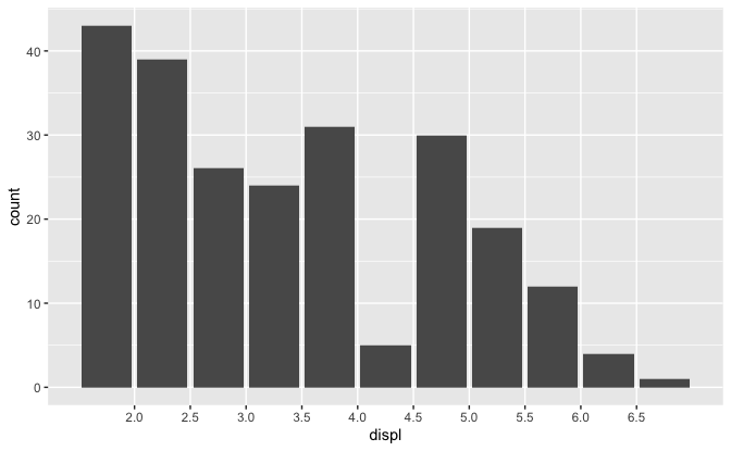 One of the benefits of this is that it is now a breeze to create histograms with tick-marks between the bars, as a histogram is effectively a binned scale with a bar geom:
