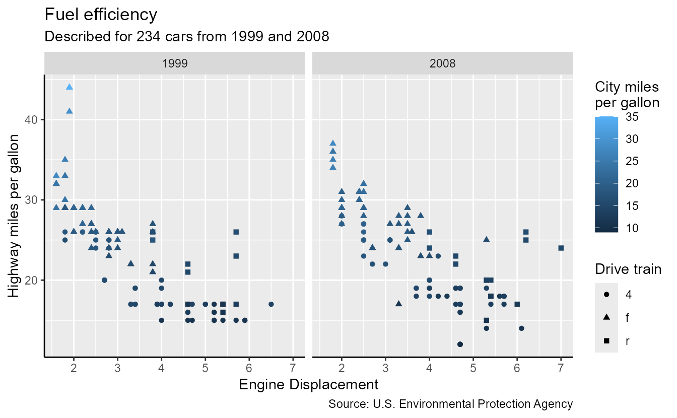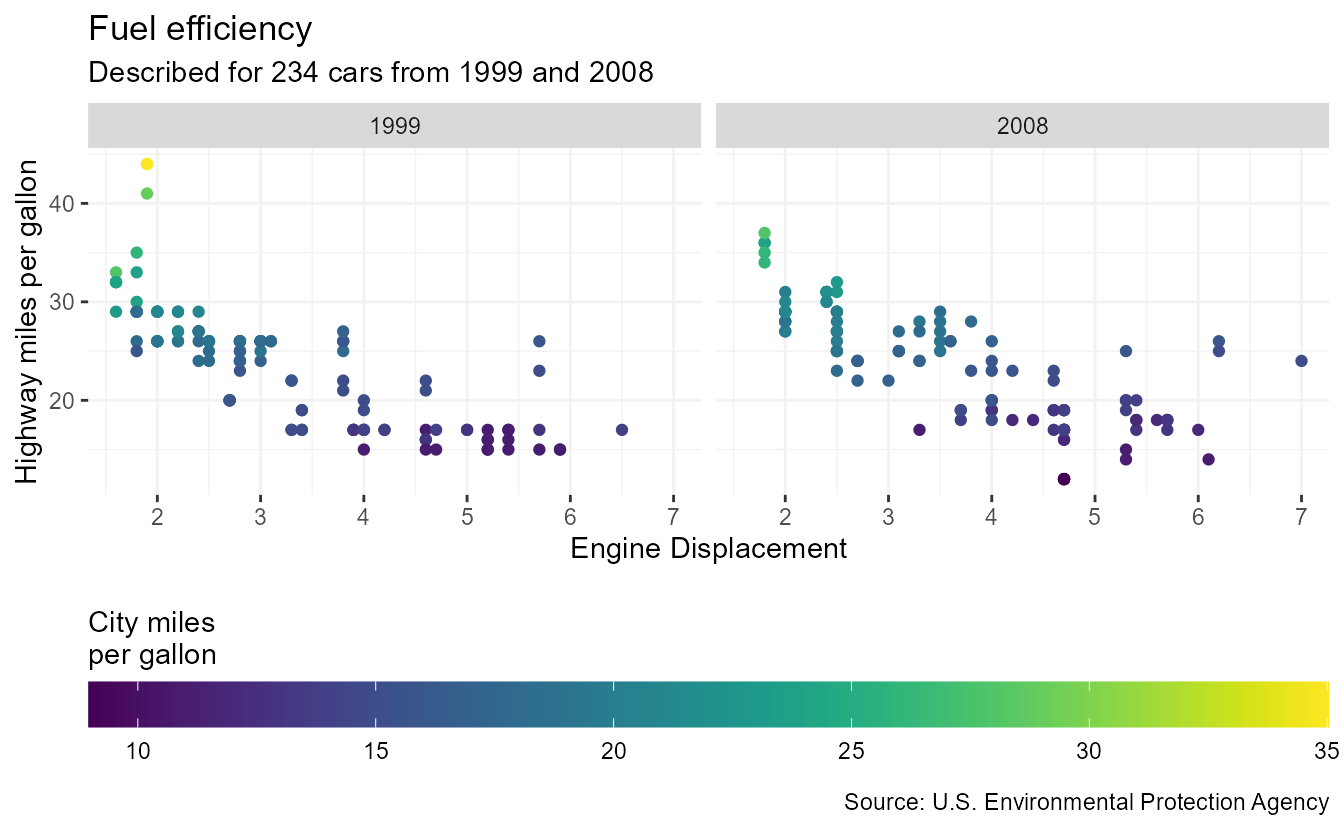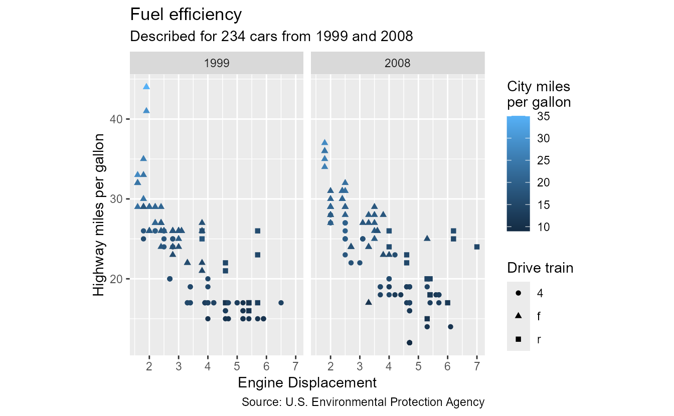 subtitle = paste0("Described for ", nrow(mpg), " cars from 1999 and 2008"),